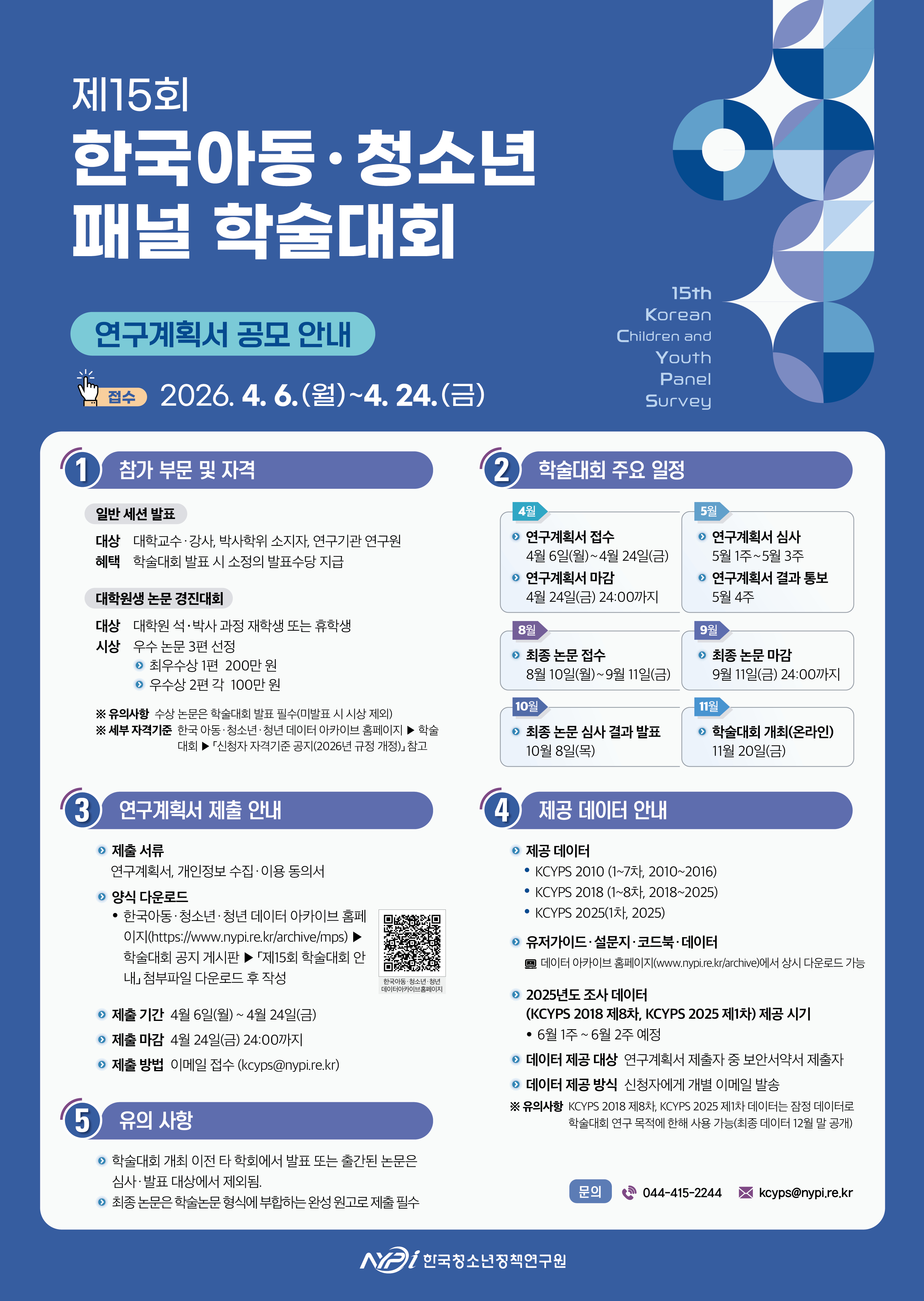 2. 제15회 한국아동·청소년패널 학술대회 연구계획서 공모 안내 포스터